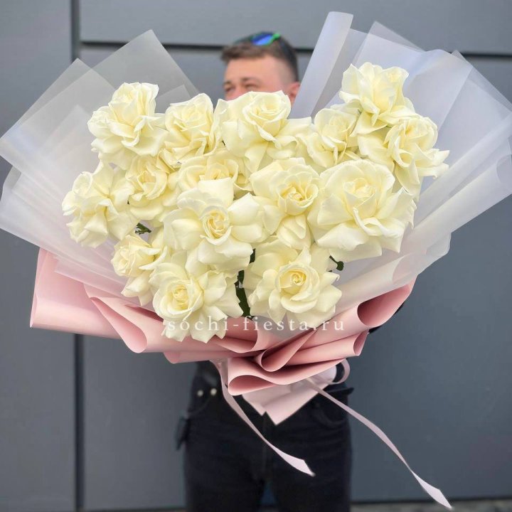 15 белых роз "Крафт"