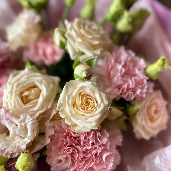 Букет кустовых роз с эустомой