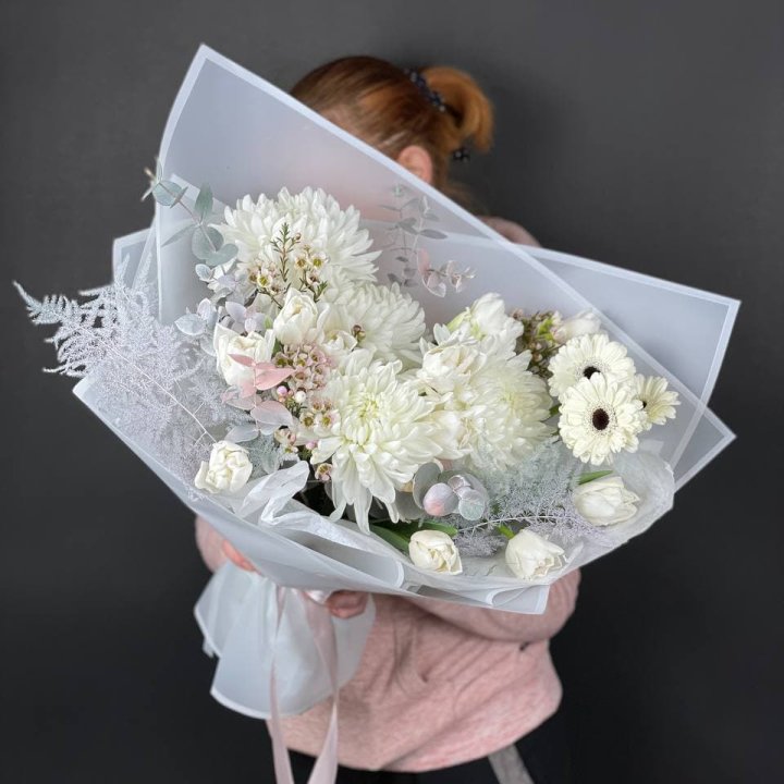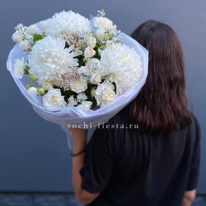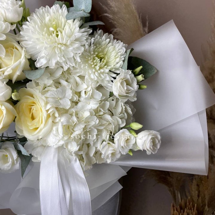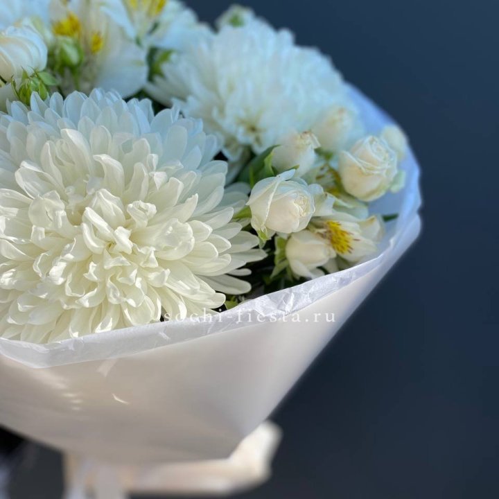Букет хризантем и роз вайт шотс