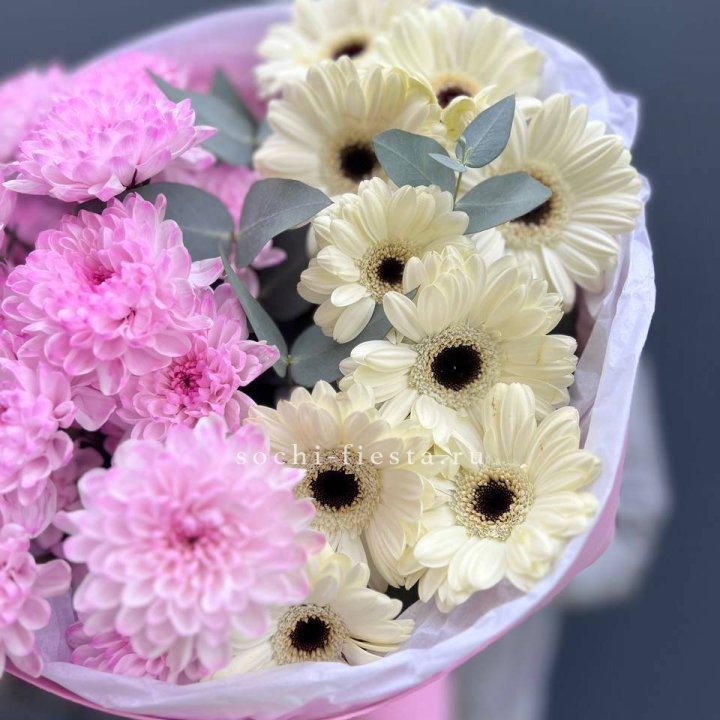 Букет бело-розовых хризантем
