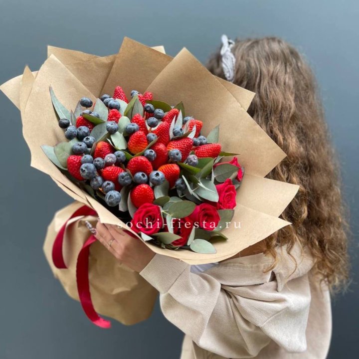 Клубничный букет с розами