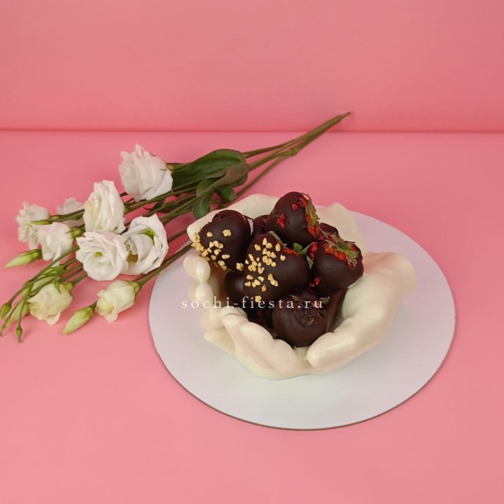 Клубника в шоколаде на шоколадных ладонях