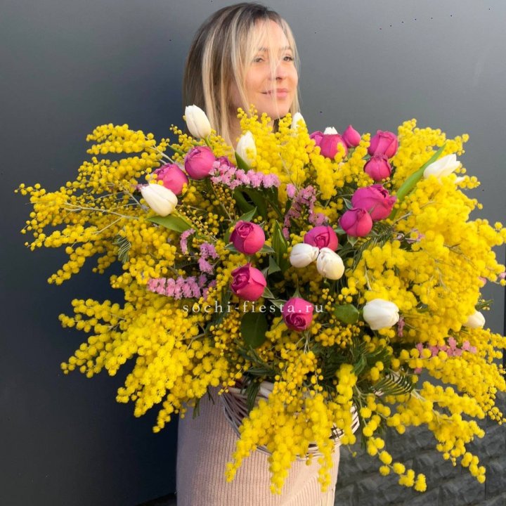 Букет тюльпанов и мимозы