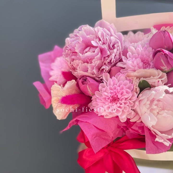 Коробка с пионами "Дабл фловер"