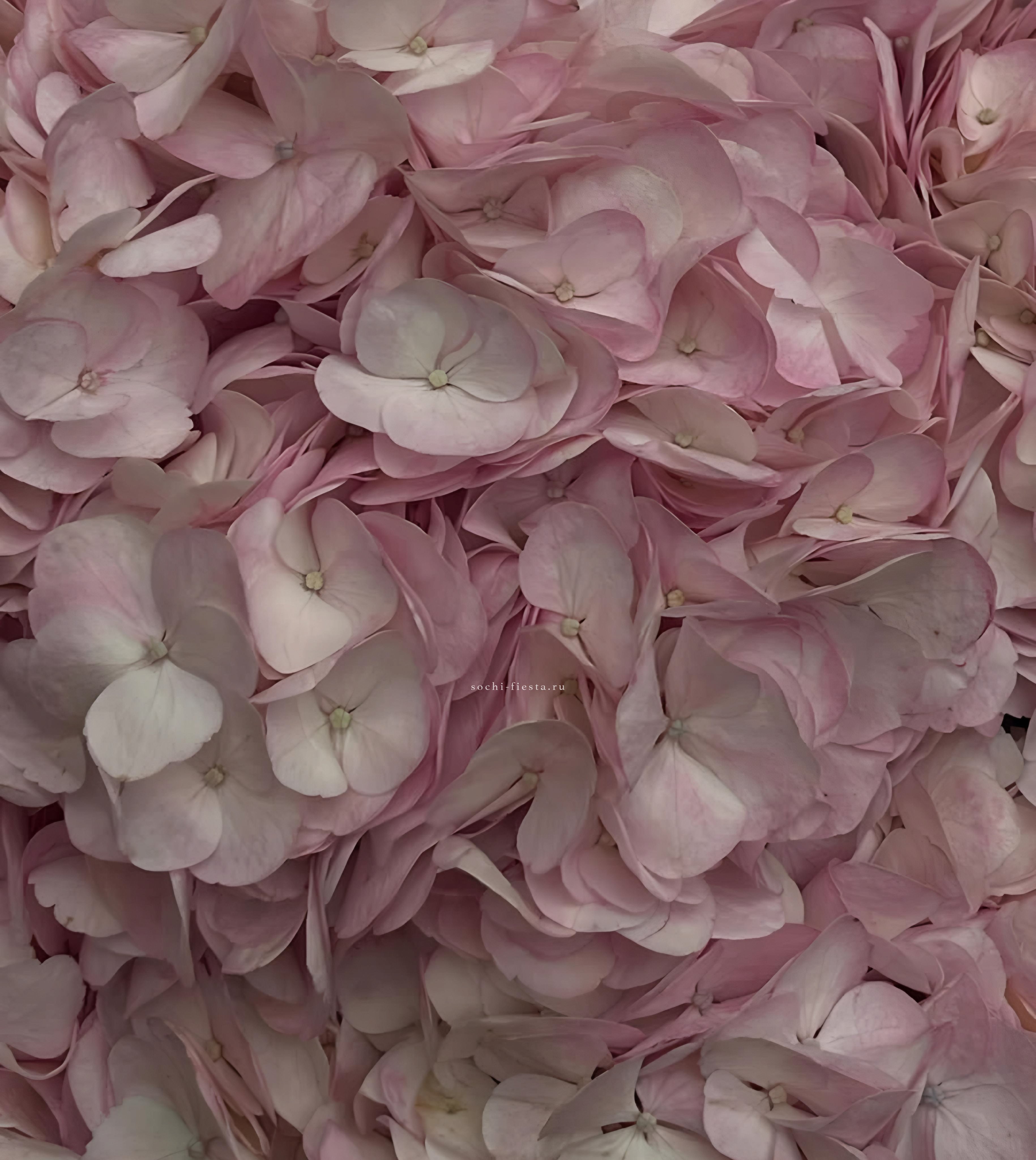 Семь пышных шапок гортензий собраны в природном джутовом кашпо. Плотные соцветия создают облачную текстуру, где каждый бутон дополняет общий объем. Композиция готова к размещению на столе или комоде без дополнительных усилий.