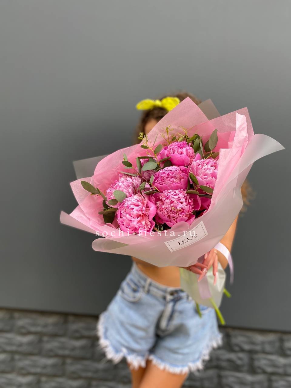 пионы, эвкалипт, тишью, пленка, лента.