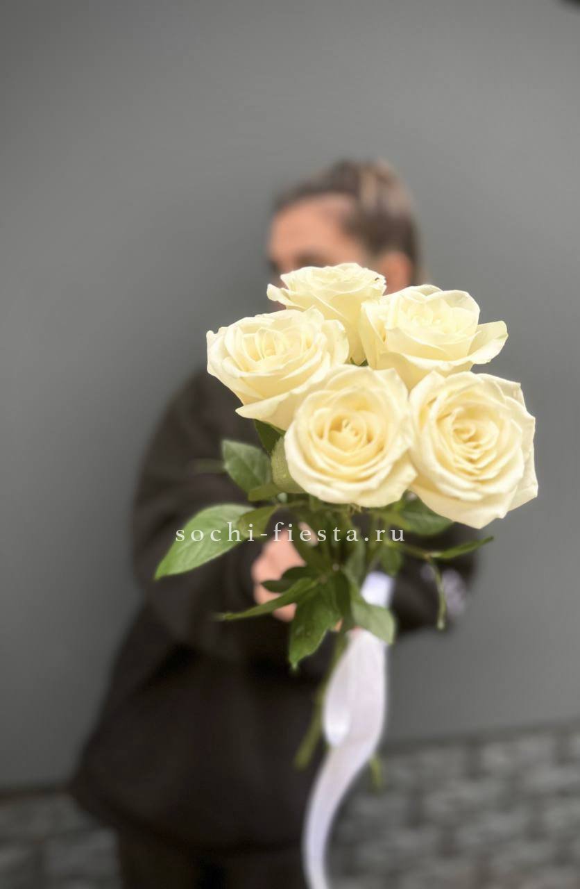 Белоснежные бутоны собраны в лаконичную форму с воздушной текстурой упаковки. Чистота линий и свежесть делают композицию универсальной для любого момента.