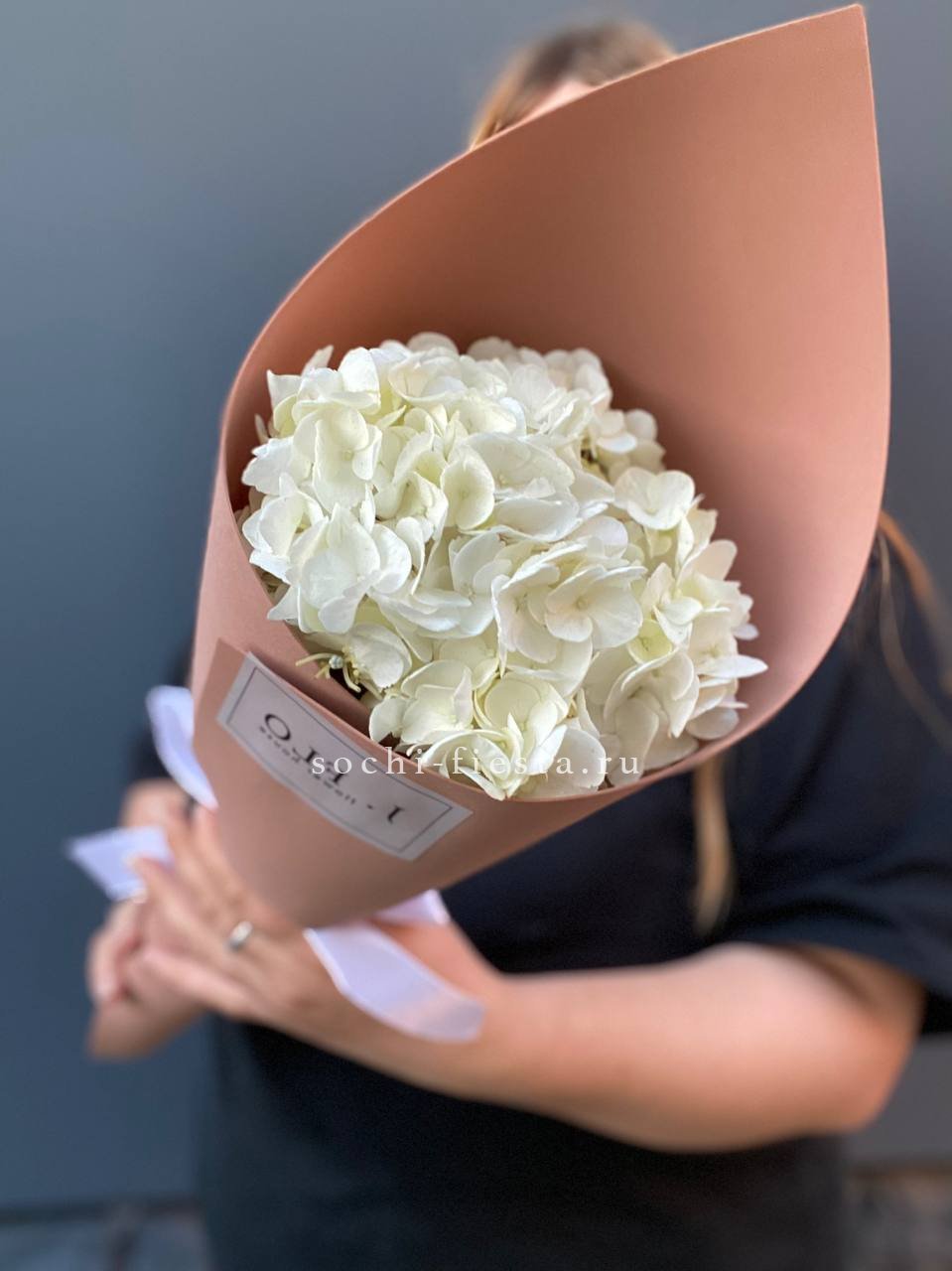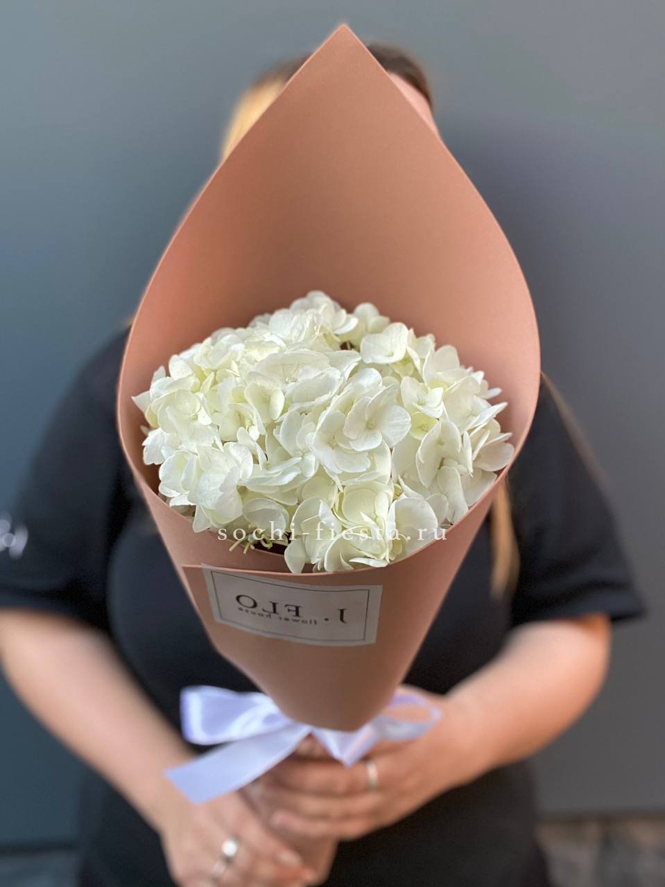 гортензия, гербера, эвкалипт в нежном оформлении.