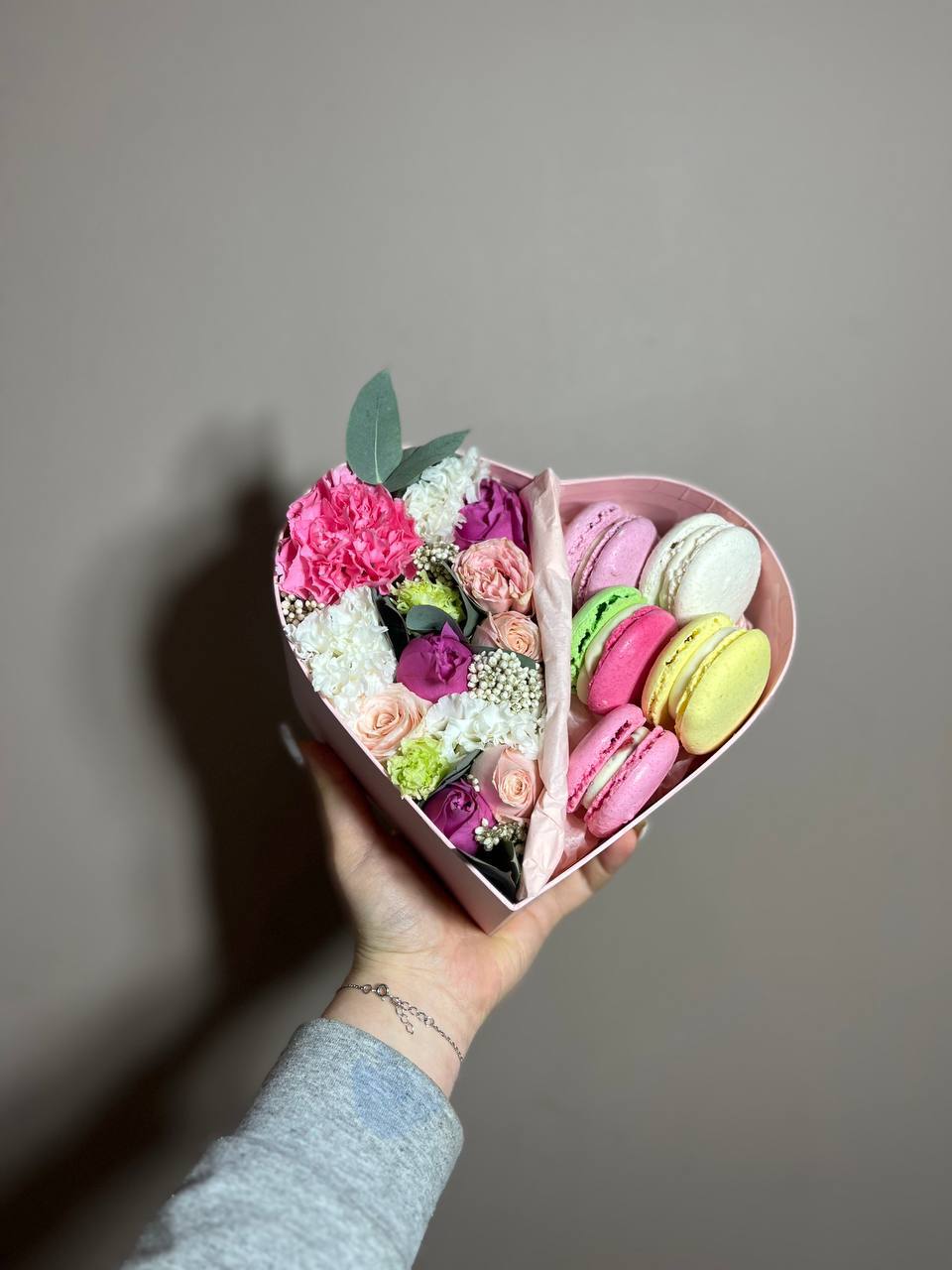 Для заказа товара "Дуо цветы и макаронсы" с доставкой в Новосибирске нажмите в корзину