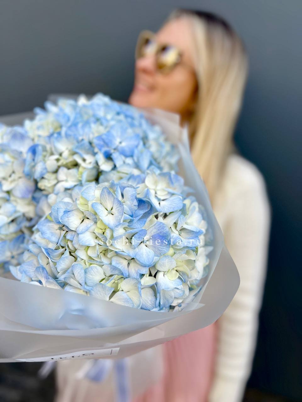 Одно крупное соцветие гортензии в лаконичной подаче. Живое решение для рабочего стола или утреннего чаепития когда хочется свежести без лишнего.