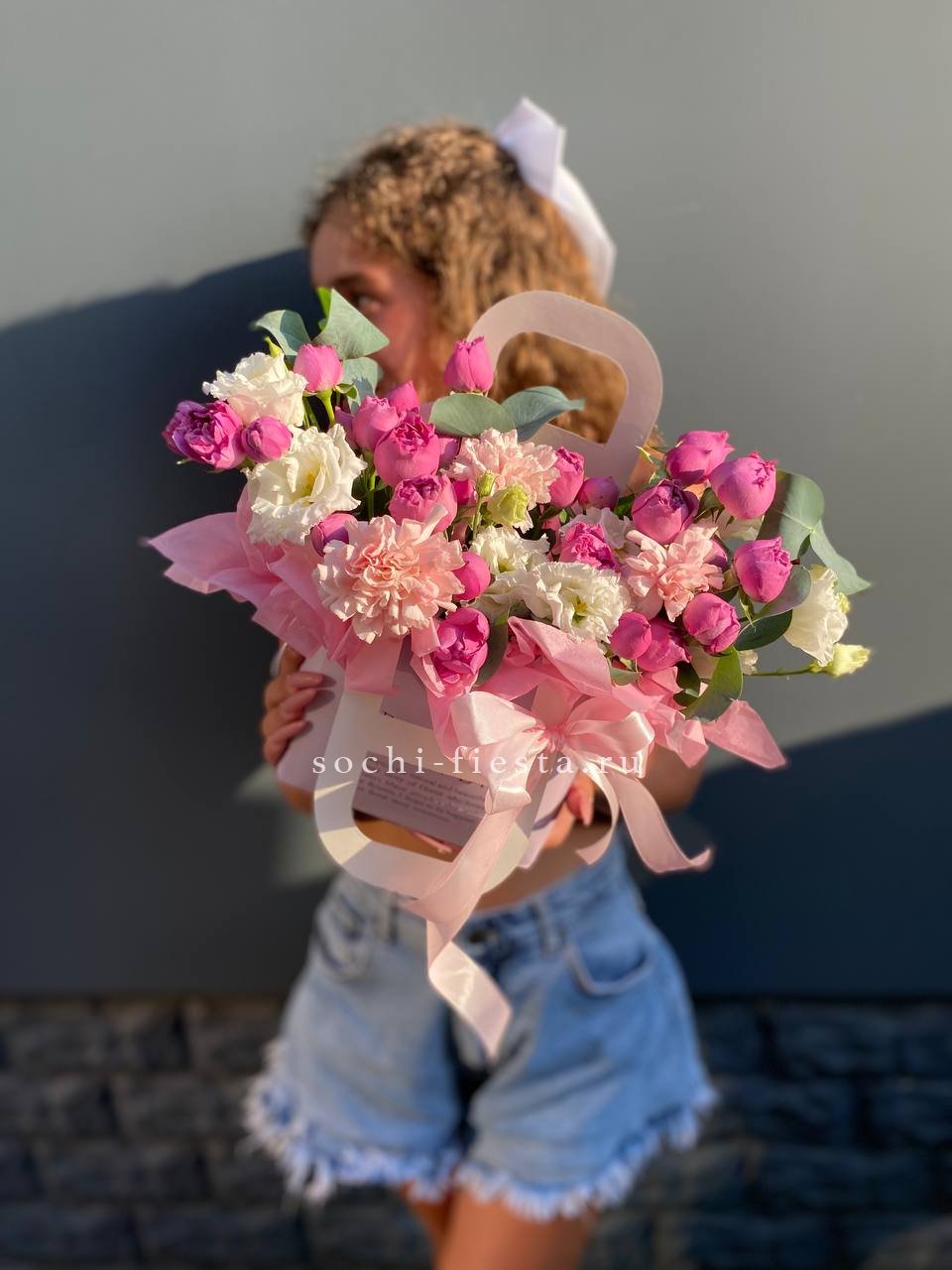 Для заказа товара "Сумочка с кустовой розой и диантусами" с доставкой в Новосибирске нажмите в корзину