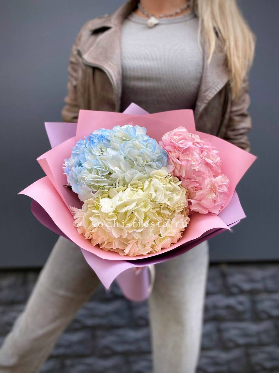 гортензия 15 шт., лента, дизайнерская упаковка.