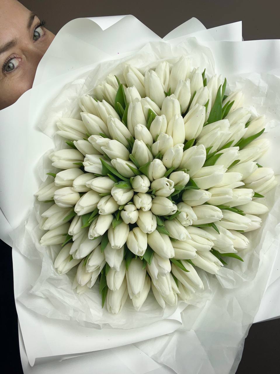 Для заказа товара "101 белый тюльпан №2" с доставкой в Новосибирске нажмите в корзину
