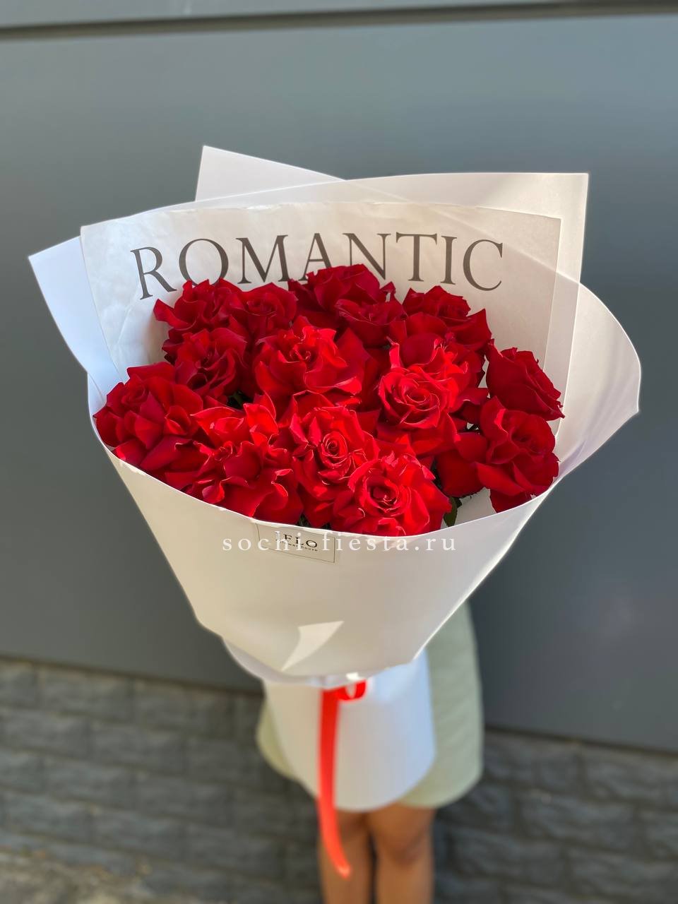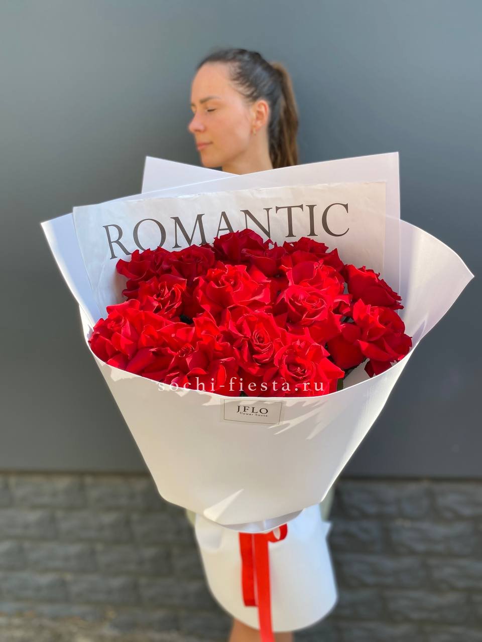 Сто один бутон насыщенного алого оттенка собраны в плотную охапку. Классика жанра в масштабном исполнении для тех моментов, когда слова не нужны.
