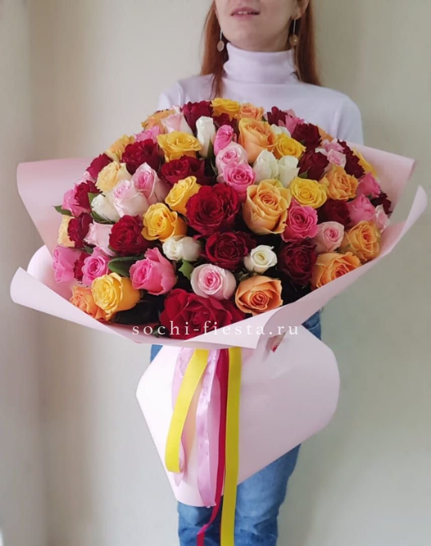 101 роза Кенийский микс "Нежность"