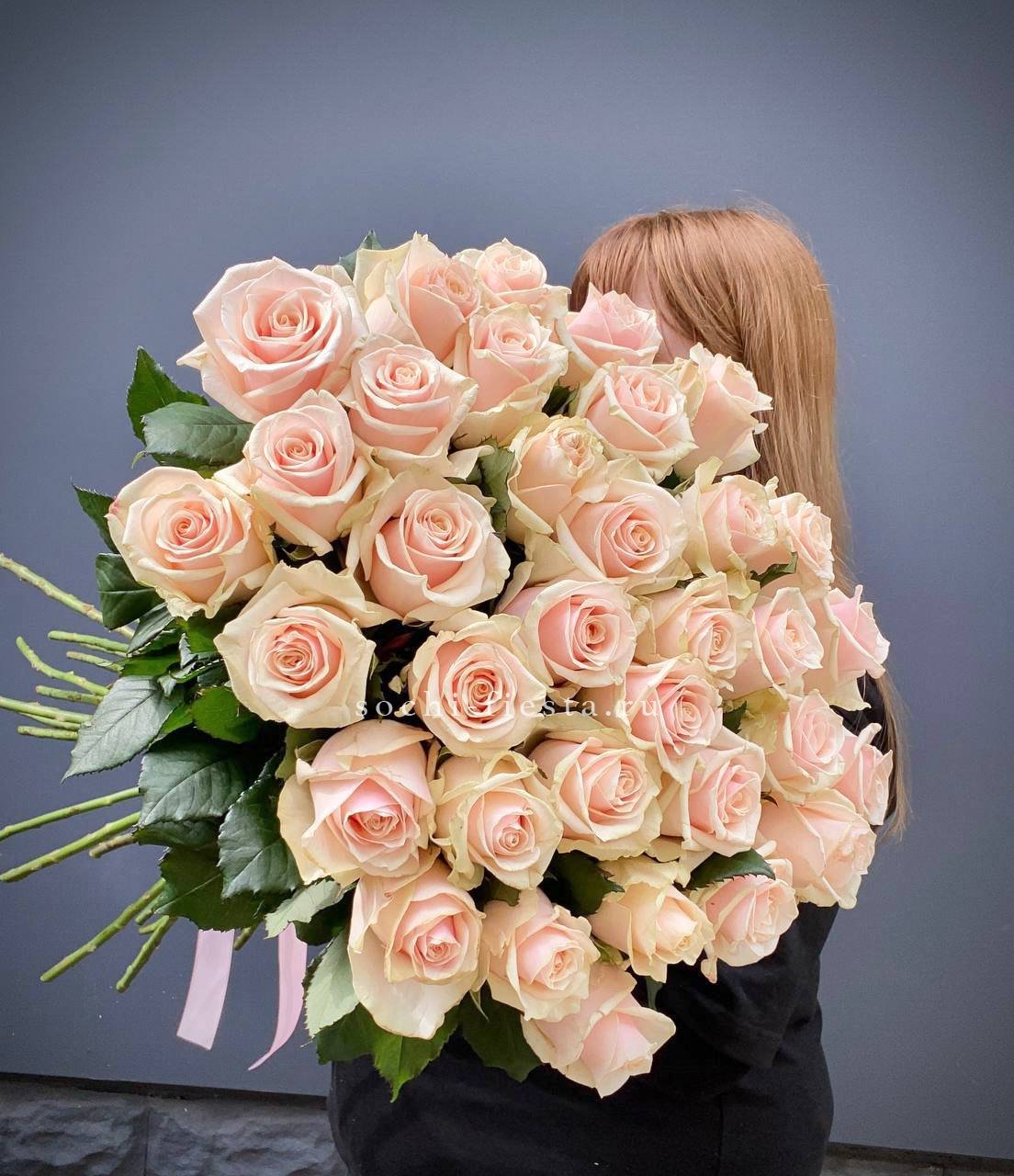 Сто одна роза в кремовых тонах — масштабная композиция с выразительным объемом. Букет наполняет пространство и создает запоминающееся визуальное присутствие.