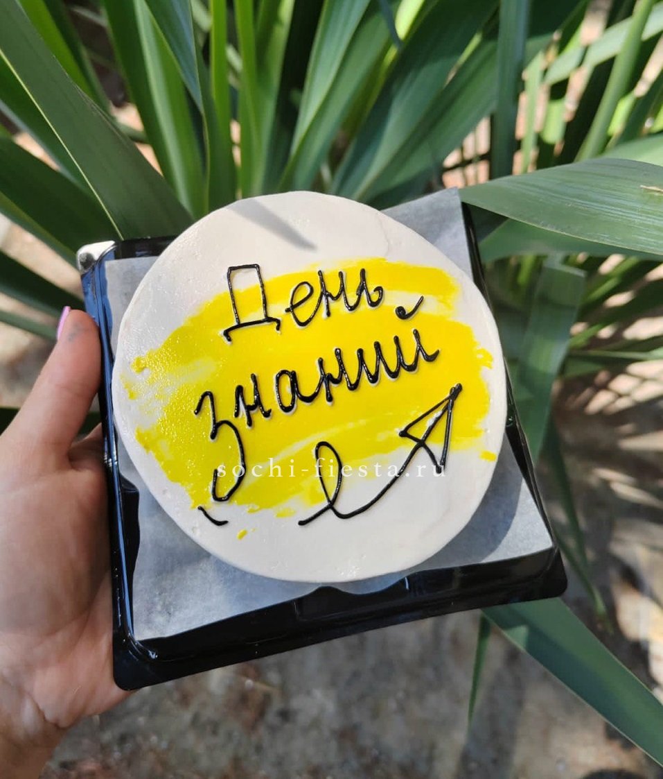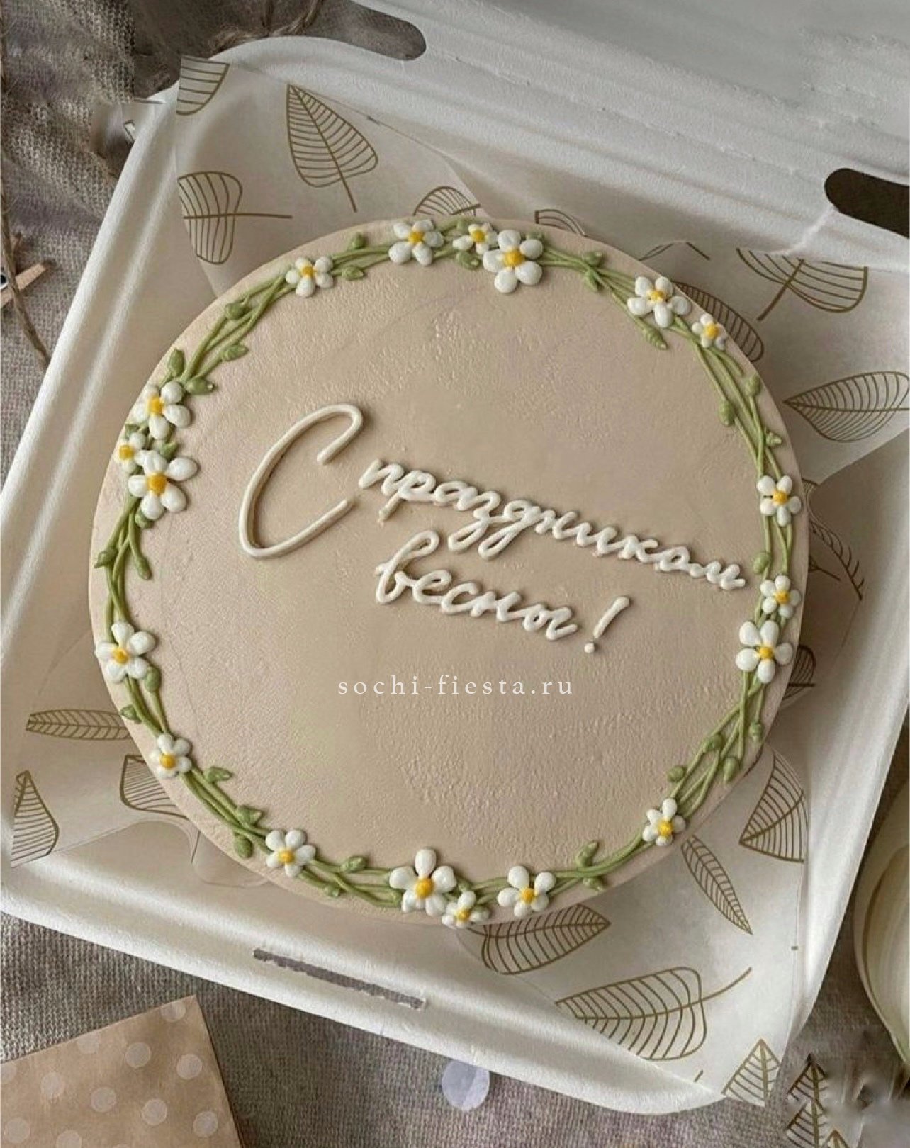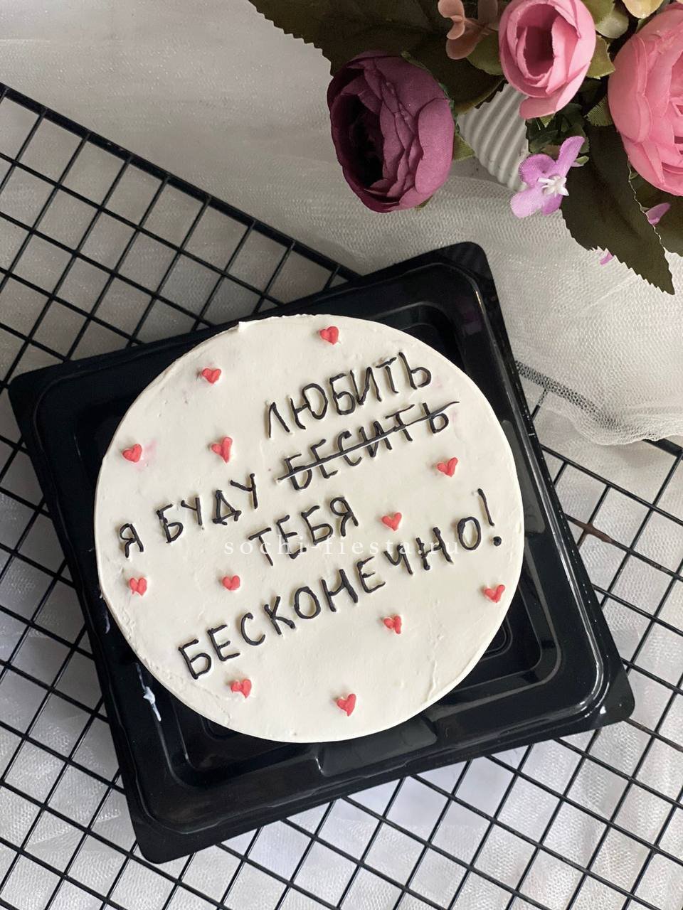 Дизайнерский бенто-торт ручной работы с поздравительной надписью и готовым декором. Формат удобен для камерного чаепития или как дополнение к основному подарку.