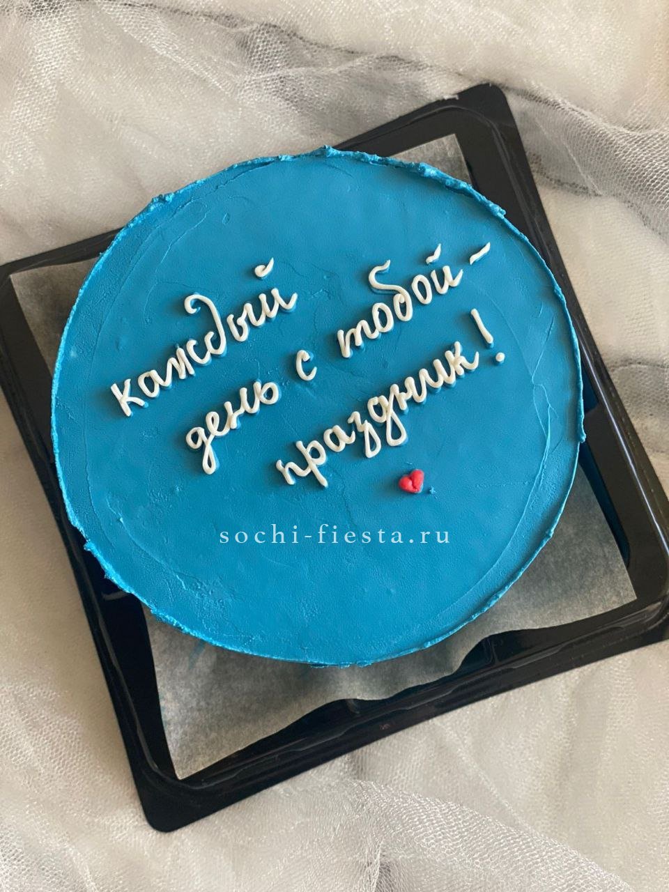 Светлая поверхность с мазками крема и декором в виде бабочек создаёт летнее настроение. Торт сочетает воздушность формы и плотность начинки на выбор из трёх вкусов.